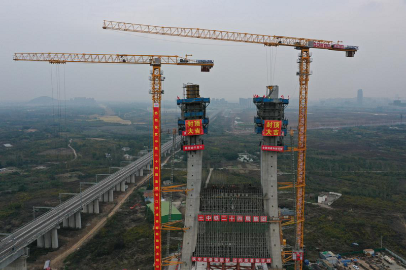 引江濟(jì)淮市政橋梁將軍嶺路橋主塔順利封頂