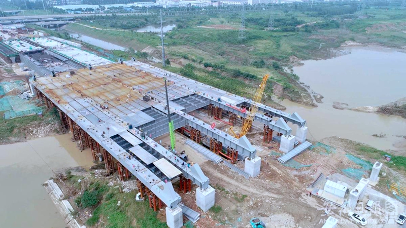 7月30日,由中國鐵建大橋工程局集團(tuán)有限公司施工的引江濟淮工程(安徽段)江淮溝通段創(chuàng)新大道橋主橋鋼縱梁合龍,為全橋主拱9月底合龍創(chuàng)造條件。