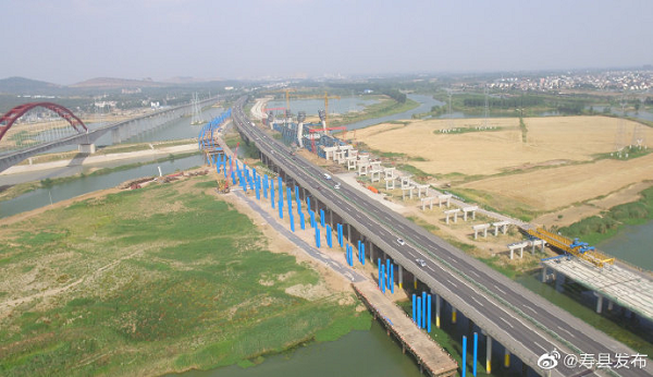 引江濟(jì)淮工程S12高速淮河大橋四號(hào)橋改建工程位于壽縣境內(nèi),交叉處合淮阜高速公路淮河4號(hào)橋?yàn)榛春犹卮髽虻囊徊糠?,前后?4.176公里橋梁,現(xiàn)狀跨引江濟(jì)淮河道為(55+100+65)米變截面連續(xù)梁橋,引橋采用30米先簡(jiǎn)支后連續(xù)裝配式小箱梁。